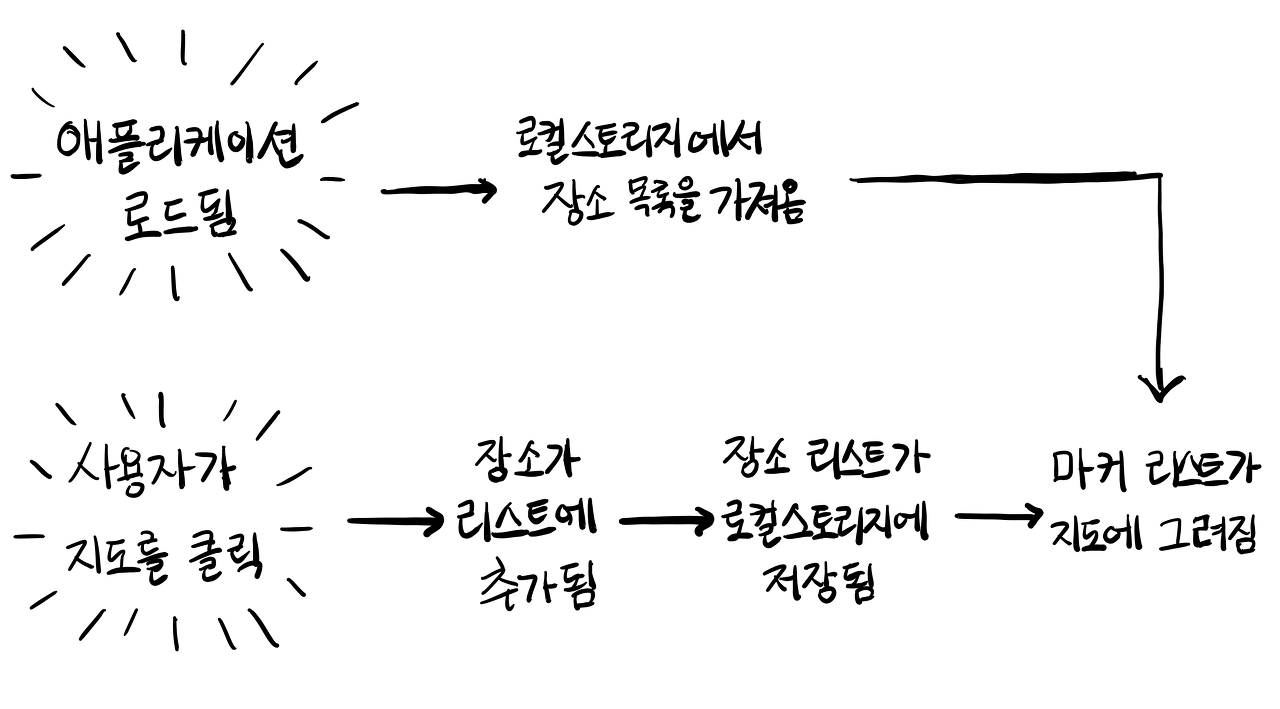물론 약간 욕심을 가지고 조금 기능을 추가할 예정입니다. 점찍어둔 장소의 리스트를 로컬 스토리지에 저장하려 합니다.