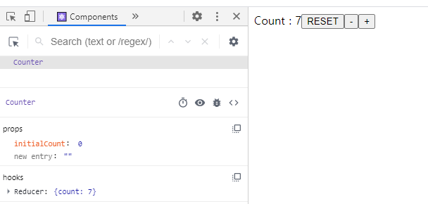 useReducer는 state와 dispatch를 반환하기 때문에 dispatch로 액션을 보내는 함수를 onClick 이벤트에 등록해 준 것을 알 수 있습니다. 그러면 RESET 버튼은 어떻게 구현할까요?