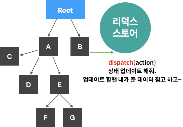state를 변화시키는 유일한 방법은 Action을 Reducer에 dispatch(송신, 전달)하는 방법 뿐이다.