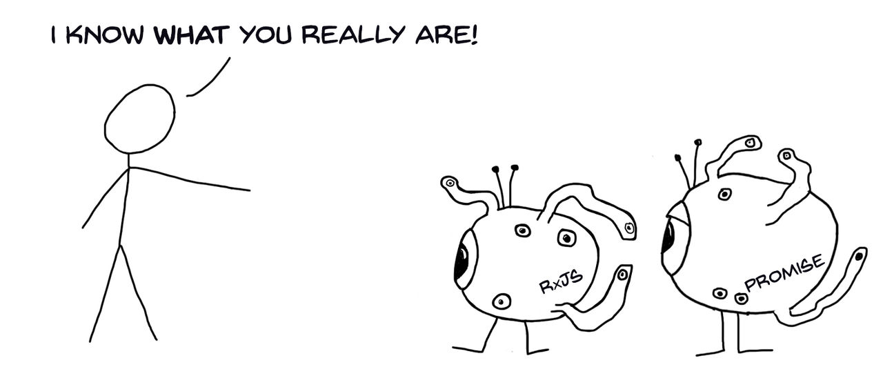 이미 이야기했듯이 DOM 이벤트 리스너는 UI 액션을 발행하고 구독하는 정도에 불과합니다. 조금 더 나아가서 Promise 는 뭘까요? 특정 관점에서 바라보면 단순히 우리가 미뤄둔 어떠한 액션이 완료되는 것을 구독할 수 있게 하고, 데이터가 준비되면 발행하는 것입니다.