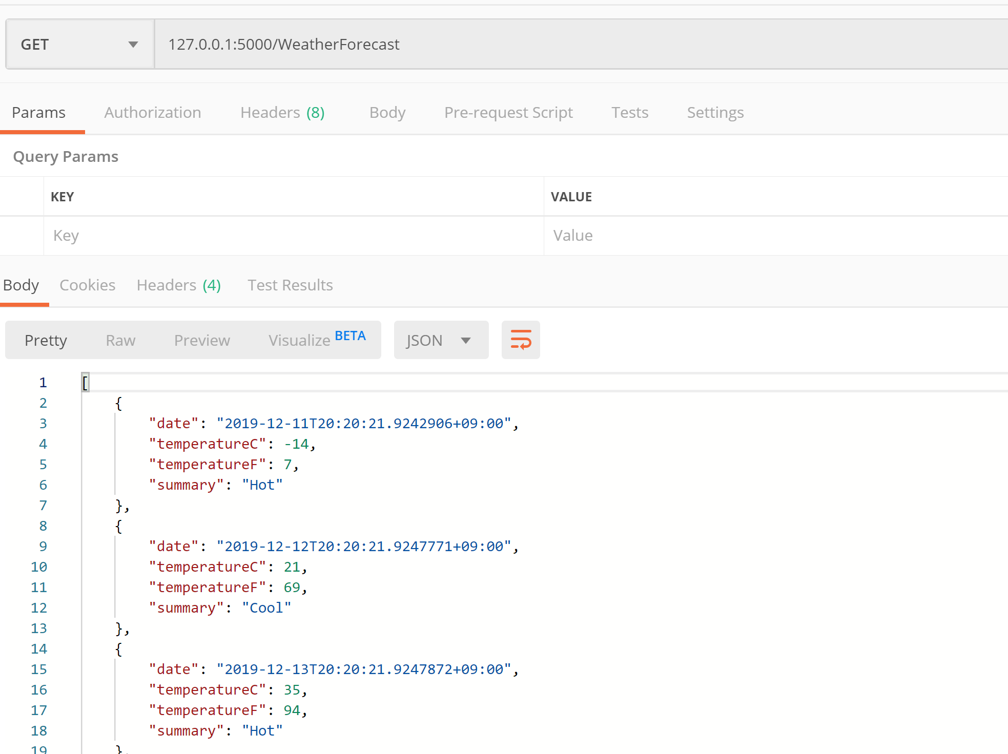 GET — 127.0.0.1:5001/WeatherForecast