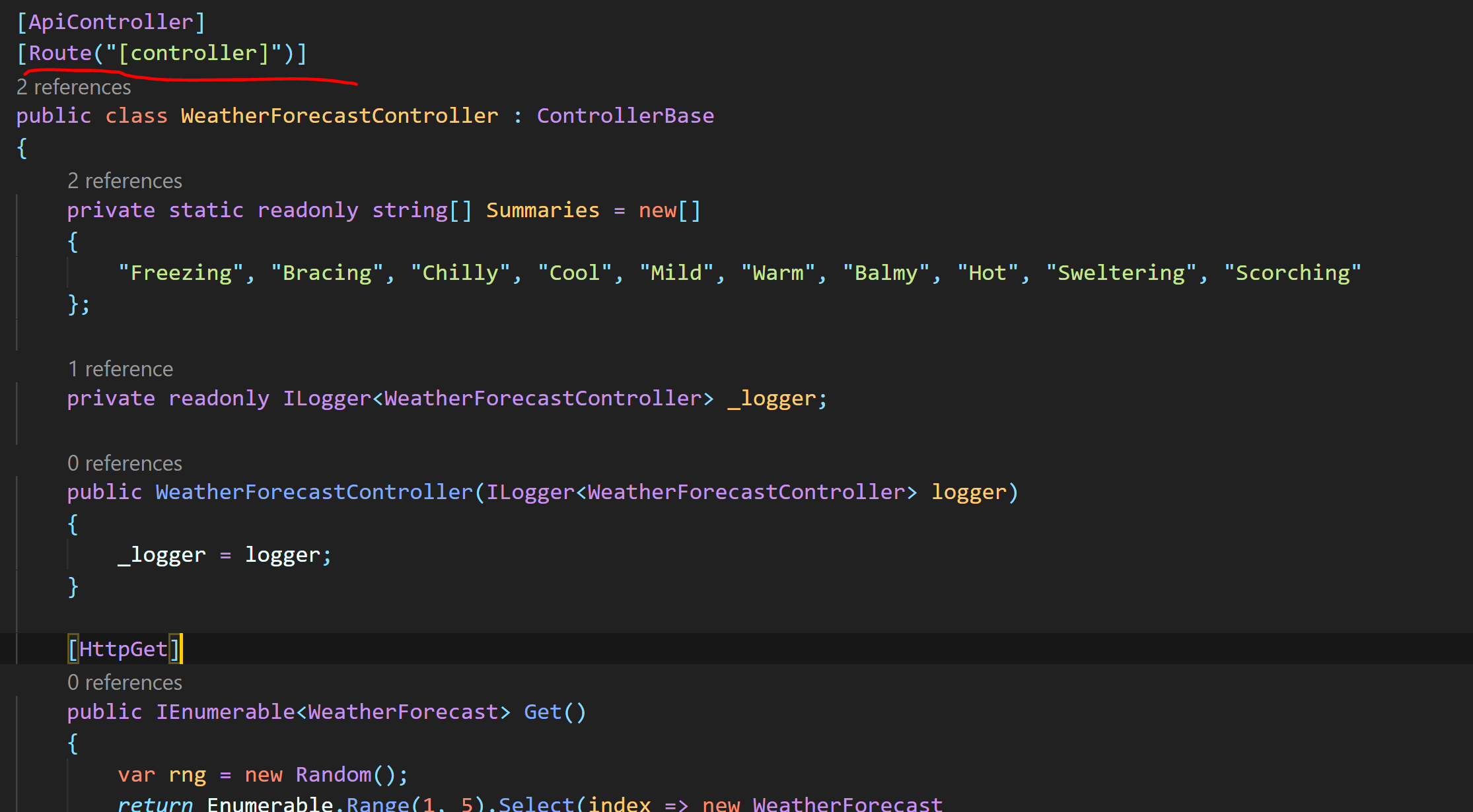 클래스 이름인 WeatherForecastController 에서 Controller 앞에 있는
