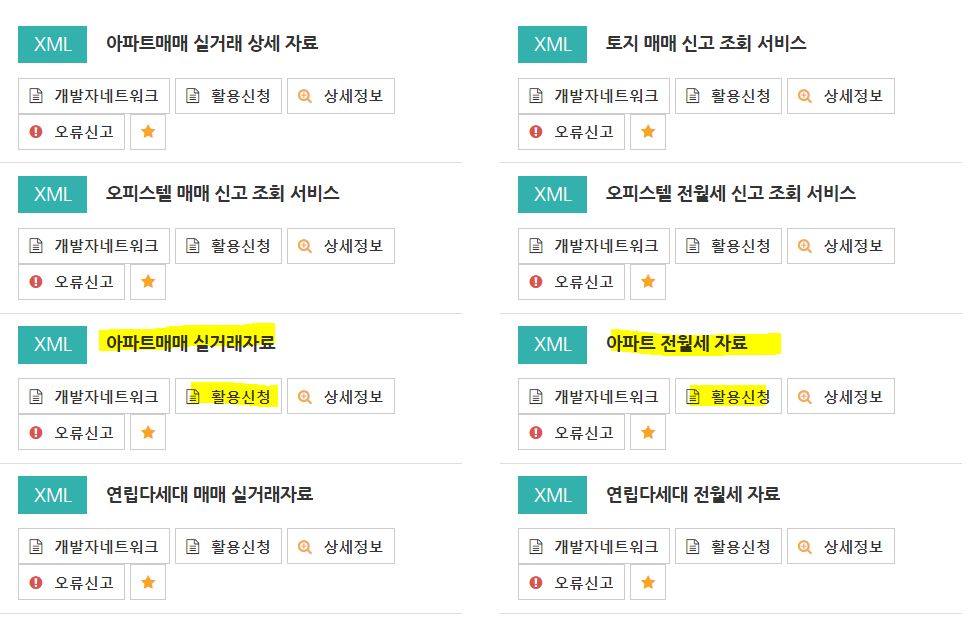 apt_price(apt_code,index) 함수는 apt_code에 아파트 고유 코드를 str형태로 넣고, index에 위에 선언한 pyoeng_list의 인덱스를 넣으면 가격정보를 return해준다.