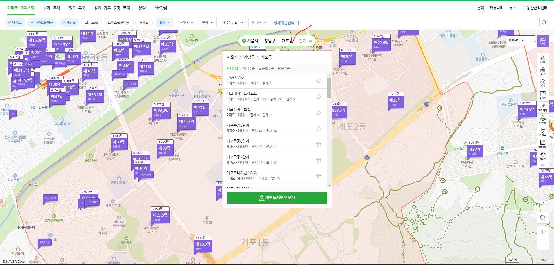 그렇다면 무슨 정보를 저장할 것인지는 아래 사진과 같이 단지 버튼을 누르로 LG개포자이를 선택해보고 결정하자.