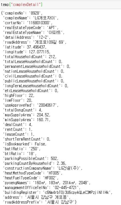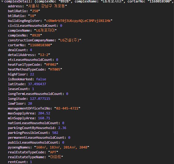 위의 사진을 보면 complexDetail 안에 단지정보가 포함돼있는것을 볼수 있다.