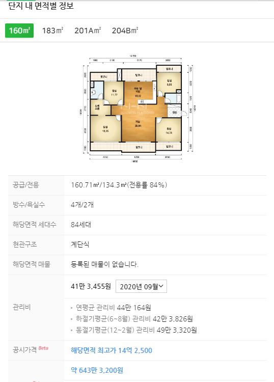 아래로 내려보면 단지 내 면적별 정보가 있는데 이또한 모두 저장한다.