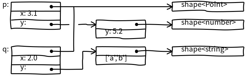 then number values for the y property must be stored boxed instead. Additionally, if there is speculatively-optimized code somewhere that relies on this assumption it must no longer be used and must be thrown away (deoptimized). The reason for such a “field type” generalization is to minimize the number of shapes of objects created from the same constructor function, which in turn is necessary for more stable performance.
