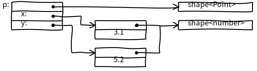 On 64-bit architectures, double values are the same size as pointers. So, if we assume that Point’s fields always contain number values, we can store them directly in the object fields.